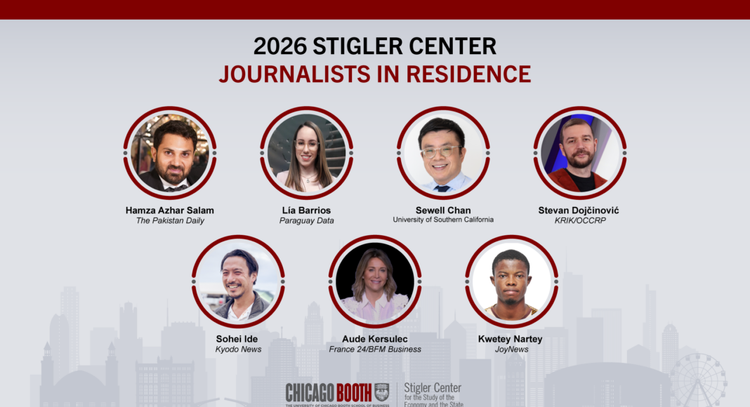 In March, the Stigler Center will welcome seven world-class journalists from across the globe for an intensive 12-week program of professional development at Chicago Booth.