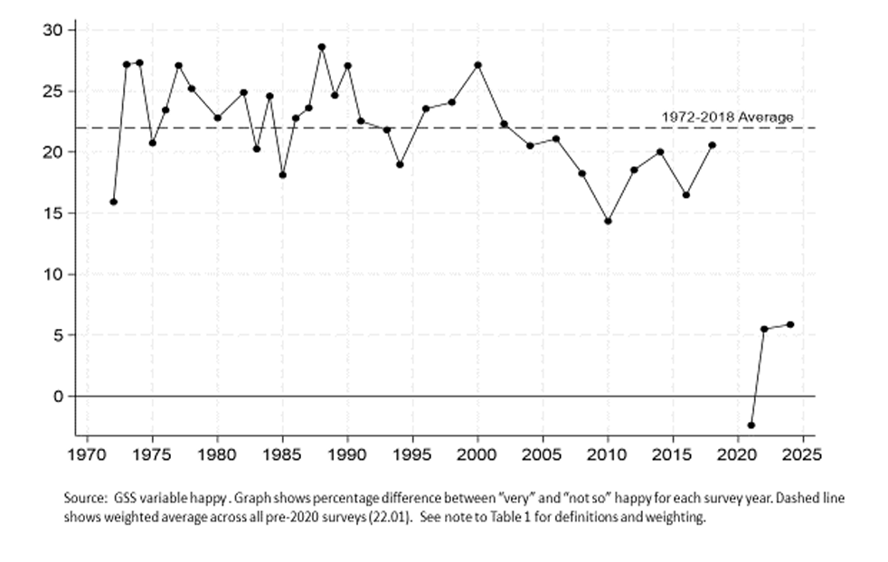 Figure 1. Happiness 1972-2018 and 2021-2024