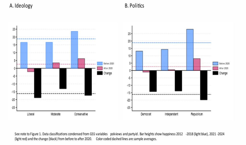 Figure 5. Ideology, Politics and Happiness. Before and After 2020